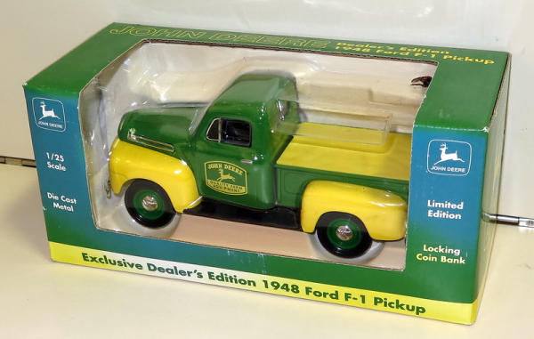 September Farm Memorabilia & Literature Auction 15 Ohio Street, Wakonda, SD 57073 Great mix of literature & smalls--all brands! Catalog | Terms of Auction | Print Catalog Catalog | Terms Back to Catalog #283 – 1/25th - JD '48 Ford F-1 Pickup Exclusive Dealer's Ed. box is faded More Details box is faded Location: 15 Ohio Street, Wakonda SD, 57073 High Bid: $11.00 – cowman bidding history Bidding has closed on this lot Back to Catalog