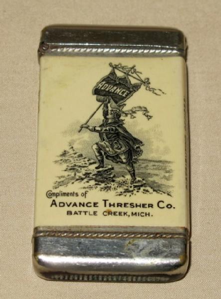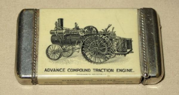 2.75" tall, this one shows the "Advance Compound Traction Engine", the one in Lot #51 is the "Advance SIMPLE Traction Engine", Celluloid is nice with no chips and cracks, just normal wear