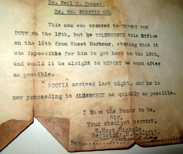 comes with an old leather wallet that the papers were found in; tells how the soldier was ordered to report for duty on the 18th but would not be able to make it on time; papers have some wear and are fragile; neat piece of history