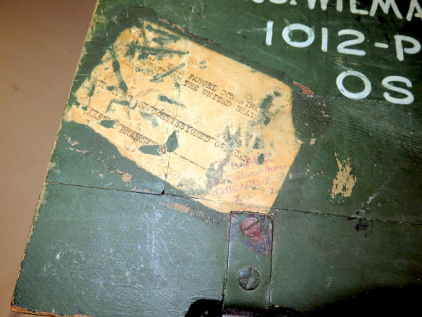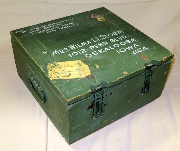WOW, this is a cool piece; has the original Nazi stamp in the inside; very nice paint & stenciling on it for when the GI sent it home with his personal items; made of wood; 14"x14"x7"; really cool piece of history