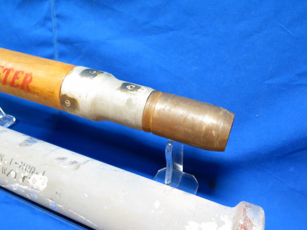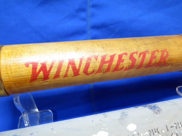 believe Winchester was added to this; includes original canister; very heavy; shell 29.5" long; bottom cork is loose; prefer no shipping due to weight
