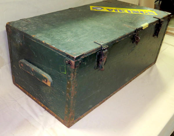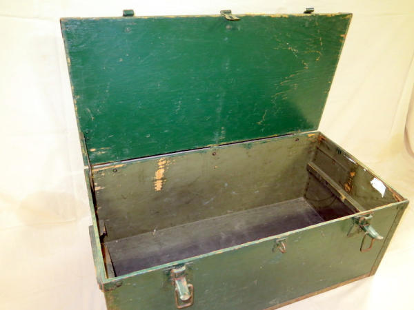 32"x16"x13"; no US markings; looks original; has a Vikings bumper sticker on top; prefer local pickup