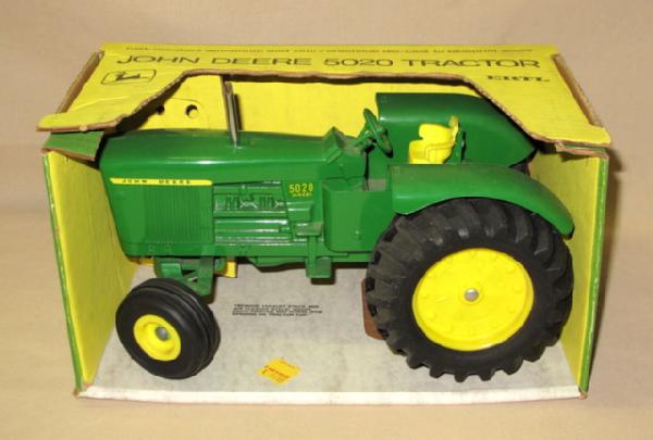 toy has chrome stack added, otherwise nice original, box is nice, hard to find box for this tractor