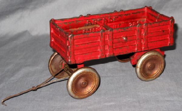 6.5" long, good casting & paint is about 80%, nickel wheels are rusty