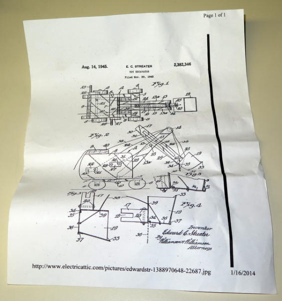 wood body, I believe this was Tonka before it was Tonka, 8" long, includes a copy of the patent papers, paint is 85% or better