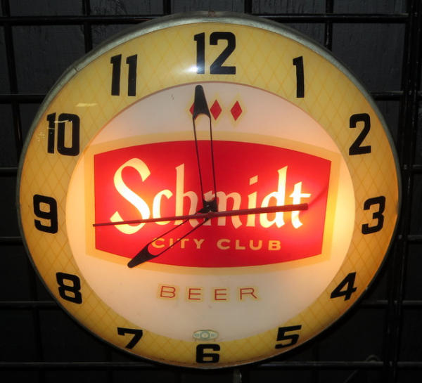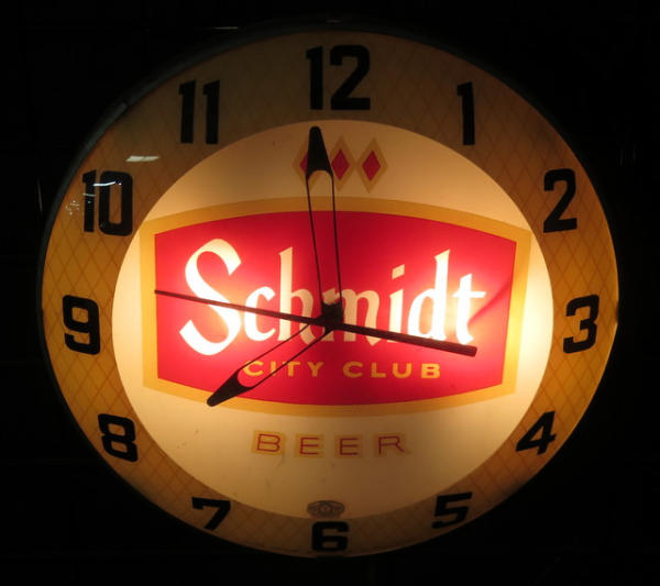 pretty scarce piece of Schmidt advertising, works, good, nice and clean, 14" across, nice piece