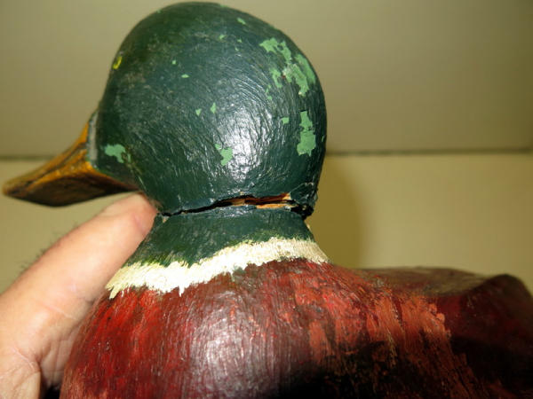 hand carved, no name; head has been broke at neck but reglued; 11" long