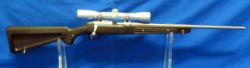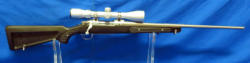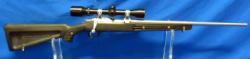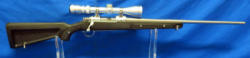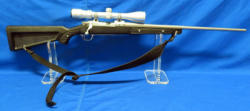 22" stainless barrel; black synthetic skeleton stock; gun has been fired and shows a few marks of field use but overall still very nice condition; action is smooth; Tasco 3x-9x40 Scope; sling; SN#783-10634