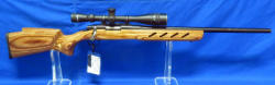 22" BBL; wood grain laminate stock; very little use; smooth action; Leupold M8-6x42 scope is very clear and comes w/neoprene sleeve; gold trigger; near mint firearm and ready for deer season! SN#77684PR7L7