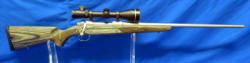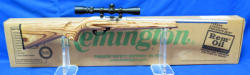20" stainless barrel; nice looking laminate wood grain stock; overall condition is great; scope is a Remington 3-9x32 and is pretty clear; comes w/2 clips, lock & manual; box is nice; SN#B2693948