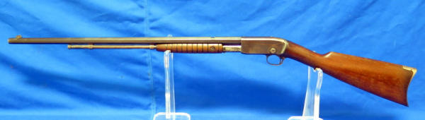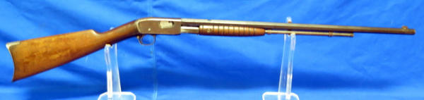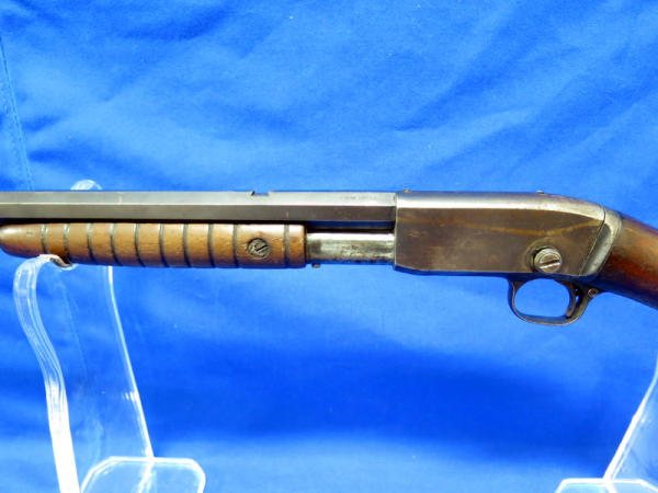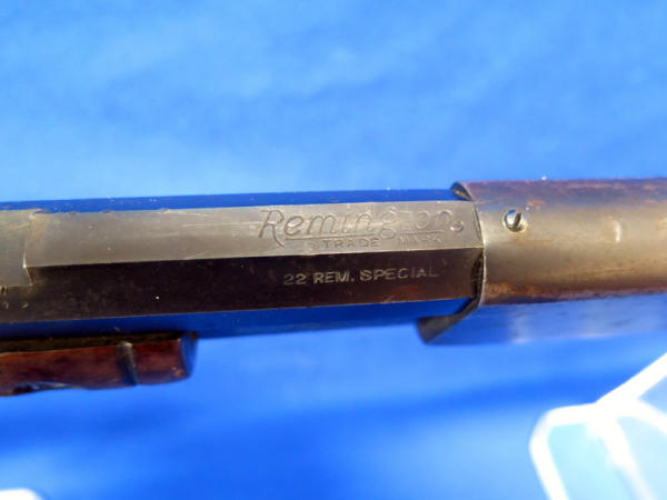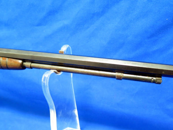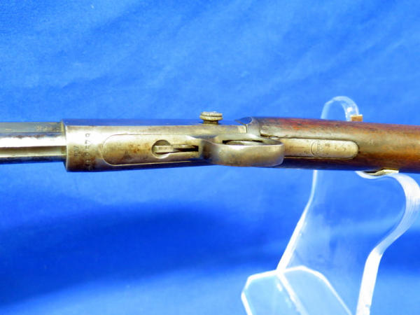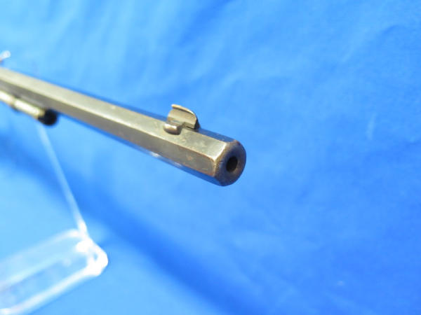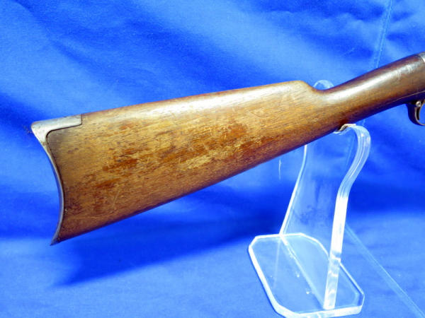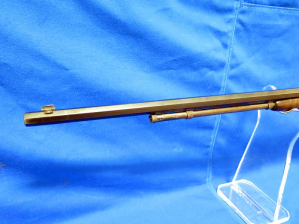 24" Octagon BBL; missing rear site; Drilled & Tapped for scope; Crescent butt place; bluing is worn & some rust spotting on barrel; has crack in stock behind chamber; condition might not be the best, but still a hard firearm to find in any condition; SN#392579