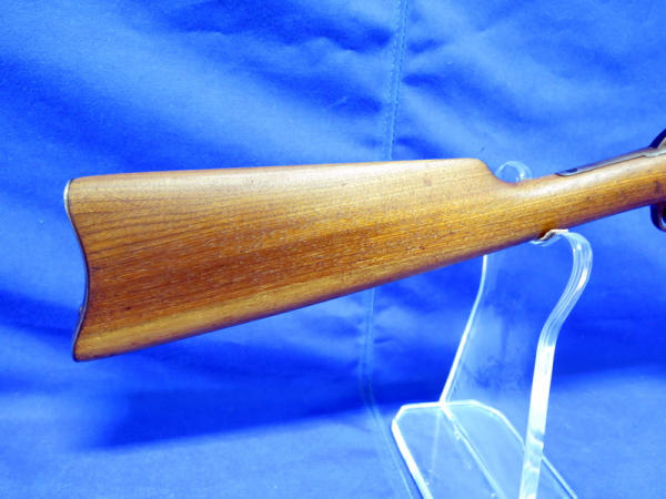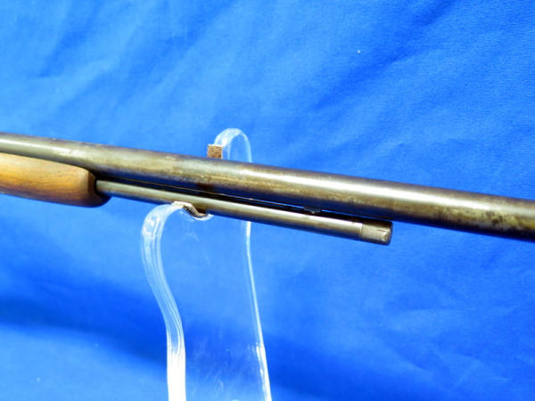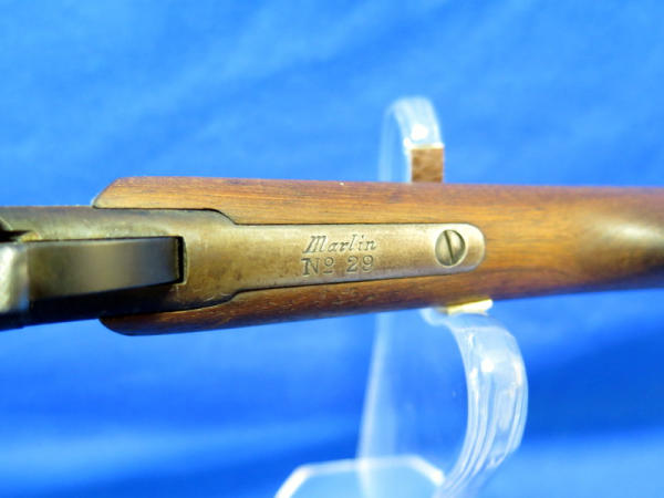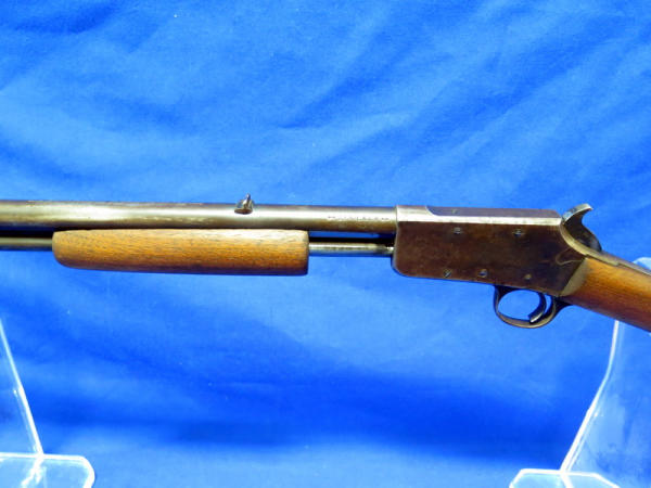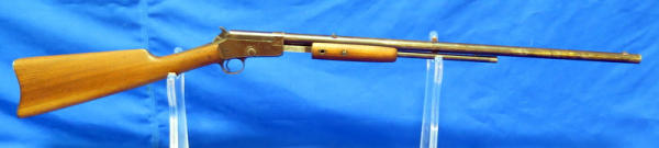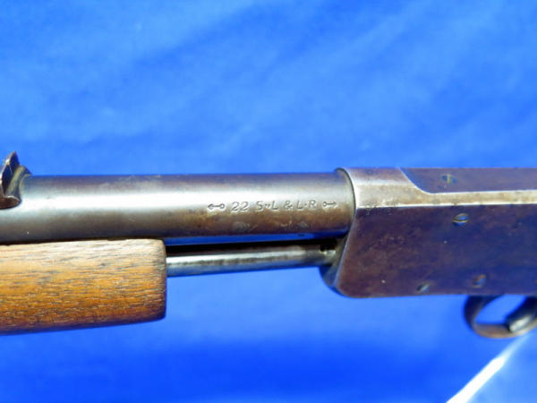 23" BBL; bluing is very worn; missing a screw in the forearm; has some hand engraving on the chamber; action is smooth; no SN#