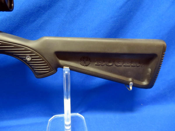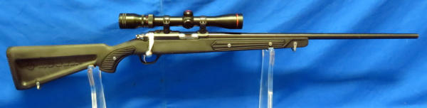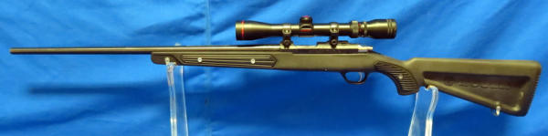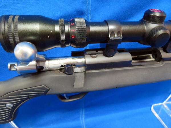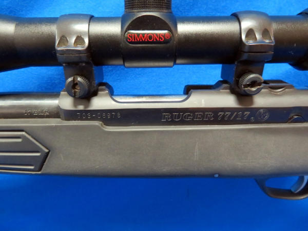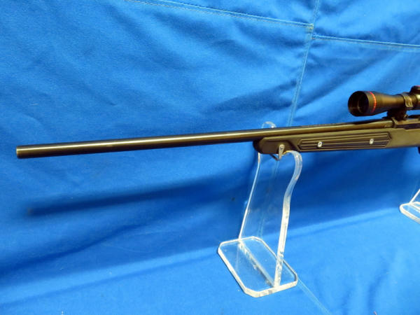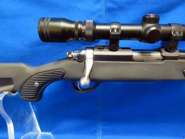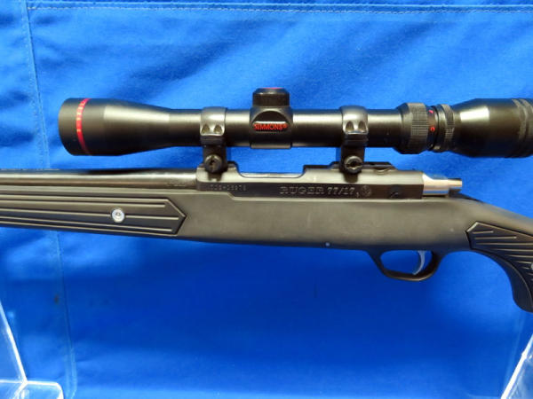 22" BBL; barrel has a few scratches in the bluing but nothing major; has synthetic skeleton stock; smooth action; Simmons 3-9x32 scope is clear; has been fired, but very little use; nice gun; SN#703-06978