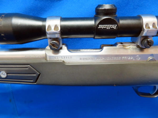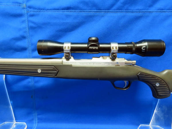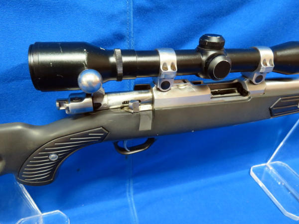 20" Stainless Barrel; has been fired but not much; black synthetic skeleton stock; Simmon 4x32 scope; SN#701-57168