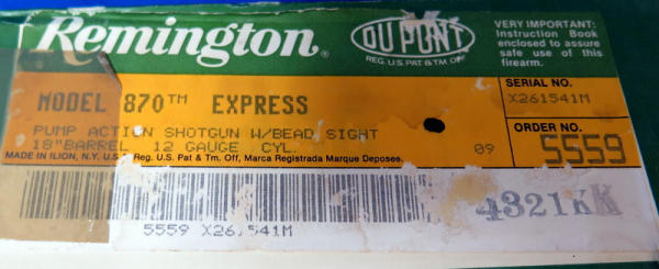 18" BBL; smallest you can have for a shotgun barrel; appears new and unfired; box has a little wear; 2.75" & 3" chamber; SN#X261541M
