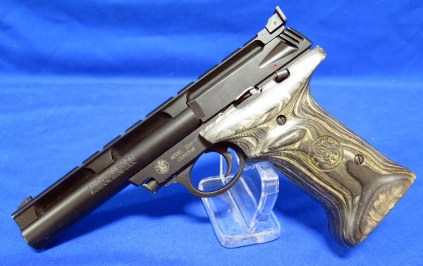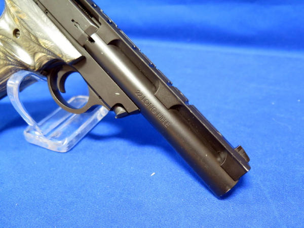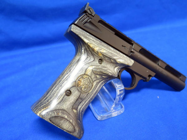 5.5" BBL; picatinny rail; laminated wood grain target grips; one magazine; appears unfired & mint; SN#UCR9308