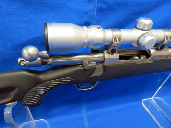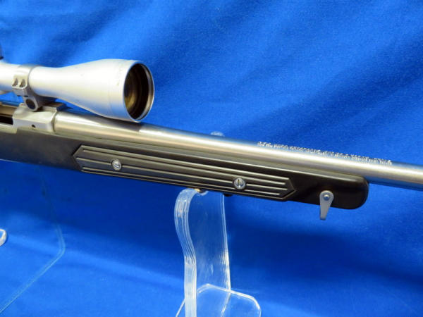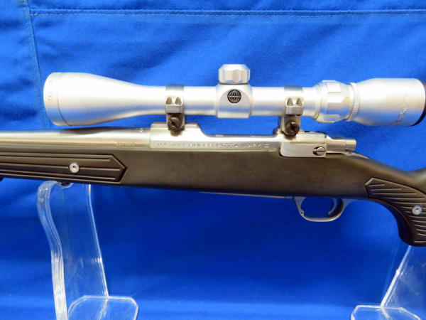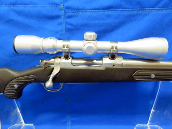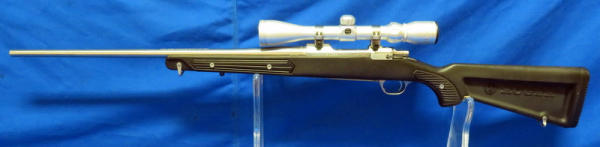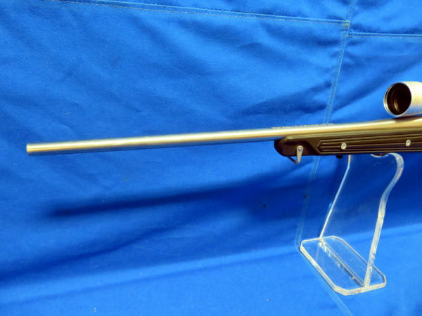 22" Stainless Barrel; black synthetic skeleton stock; smooth action; fired but very little use; Tasco 3x-9x40 Scope is clear; nice gun; SN#784-50963