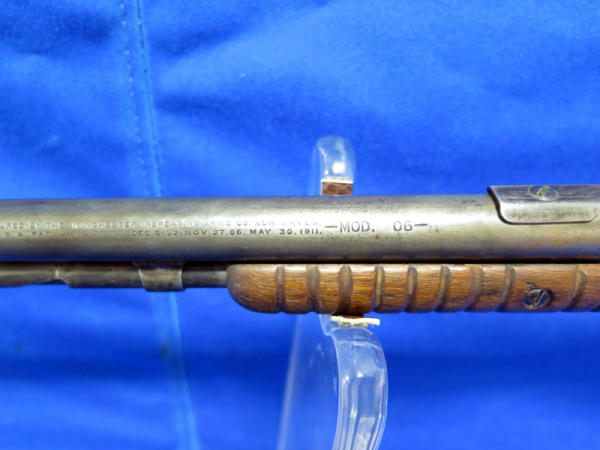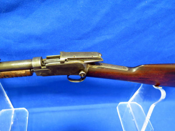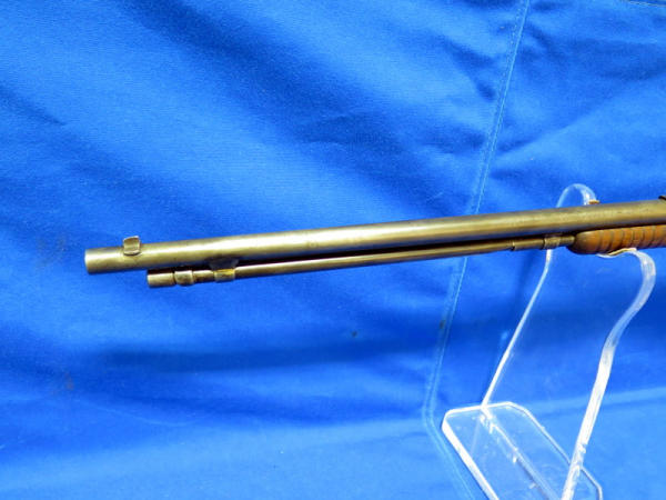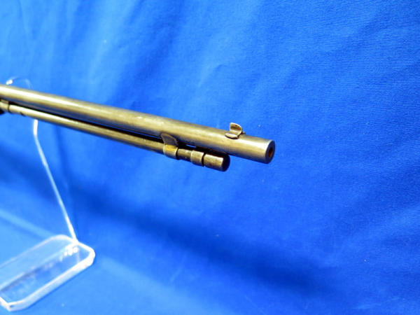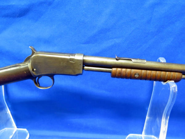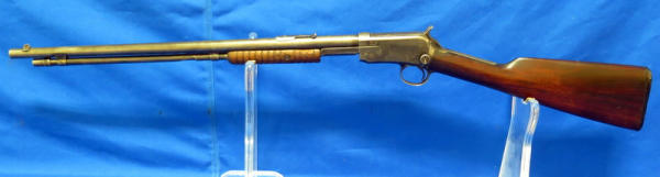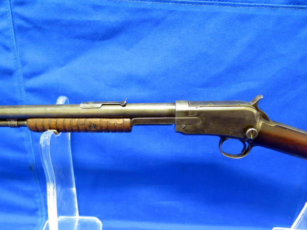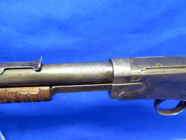 20" BBL; bluing is worn; receiver tube has been solder back to barrel; crack in forearm; chip in butt plate; action is smooth; SN#654486