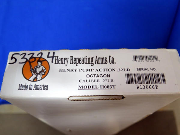 20" octagon BBL; mint and unfired; comes with box; don't find the pump Henry very often! SN#P13066T