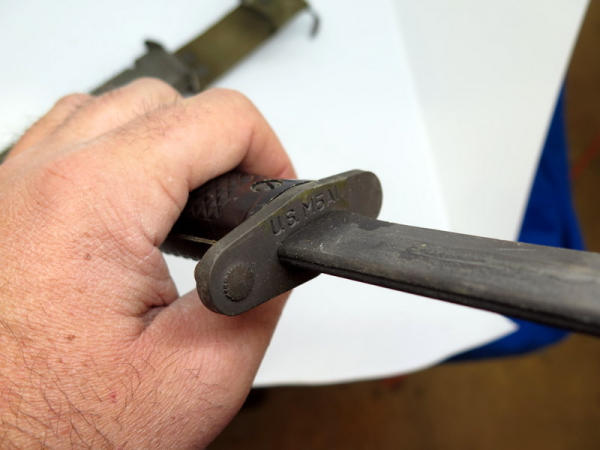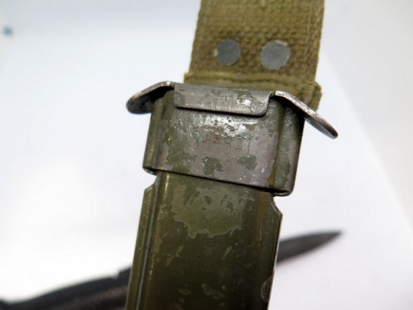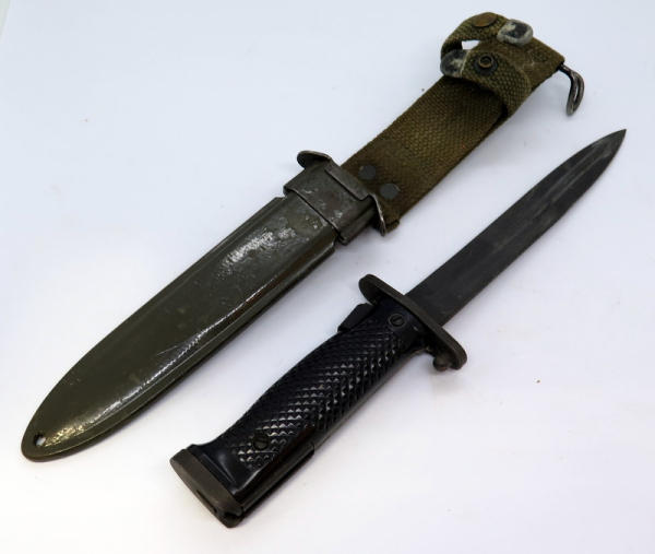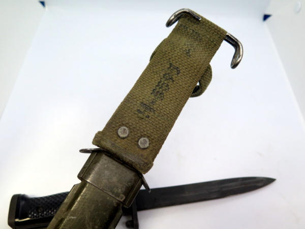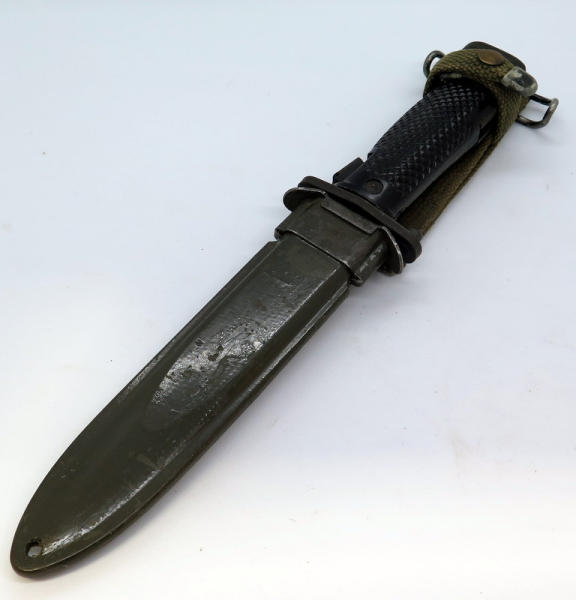 nice condition for age; scabbard has some paint flaking; blade is 6.75" long;