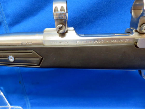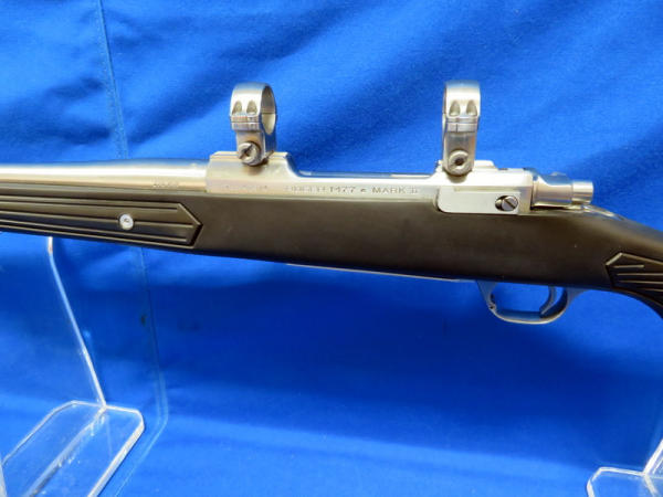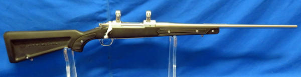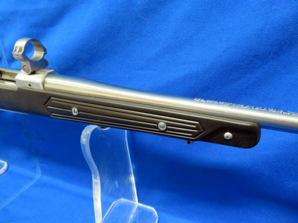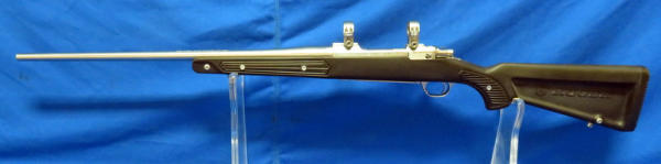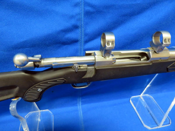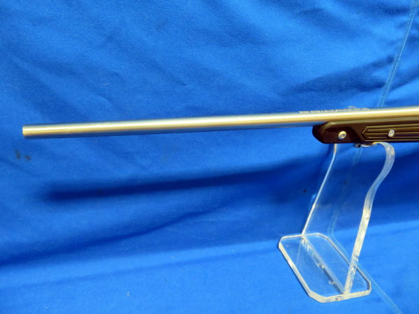 22" Stainless Barrel; black synthetic skeleton stock; near mint and only fired a couple times; action is smooth; has scope ring mounts; SN#783-92374