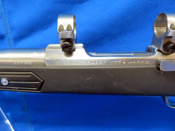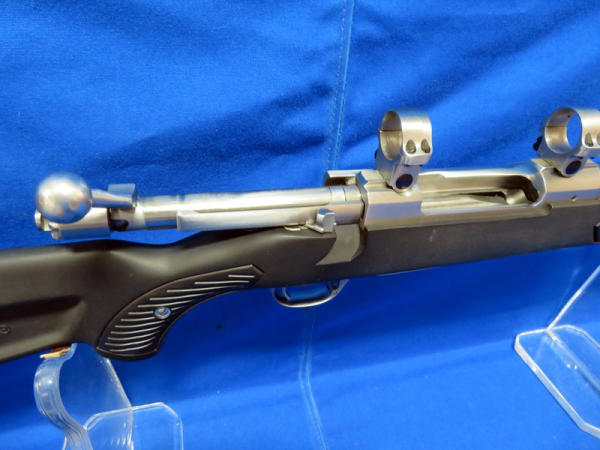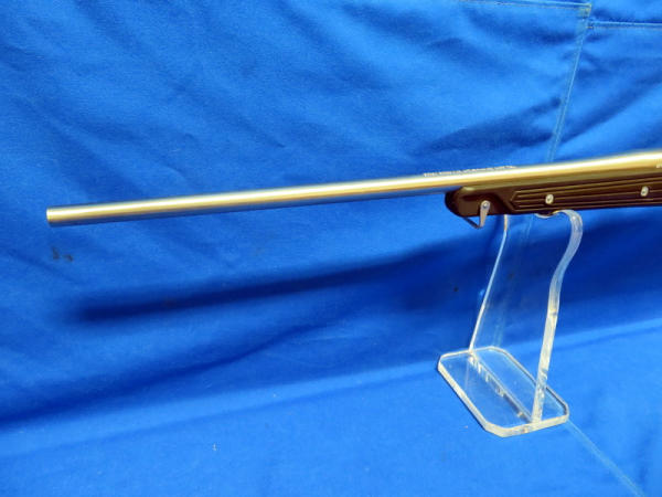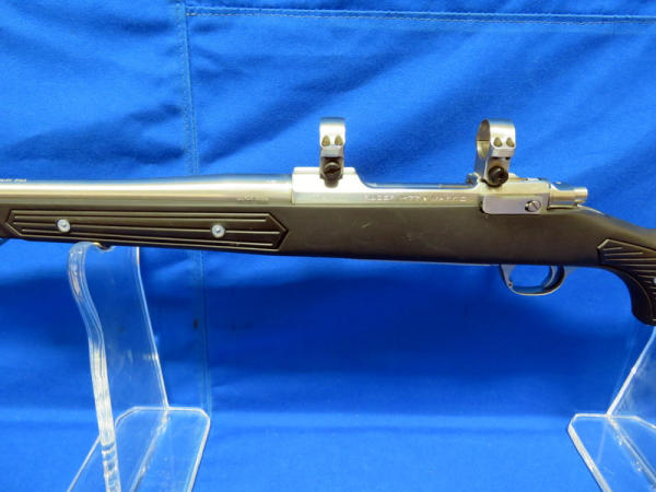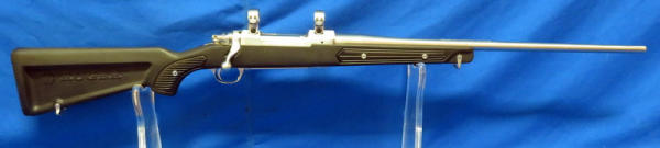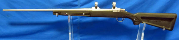 22" stainless barrel; black synthetic skeleton stock; this gun appears unfired; very nice; has scope mounts; smooth action; SN#780-63899