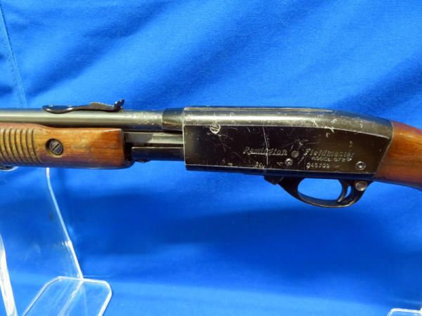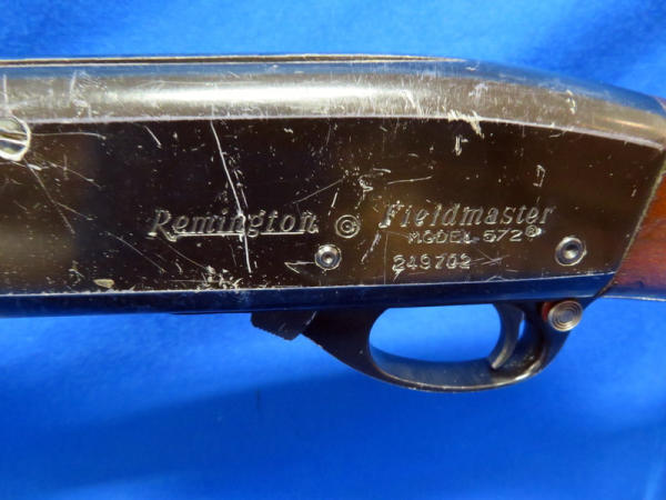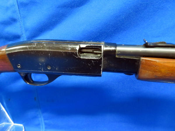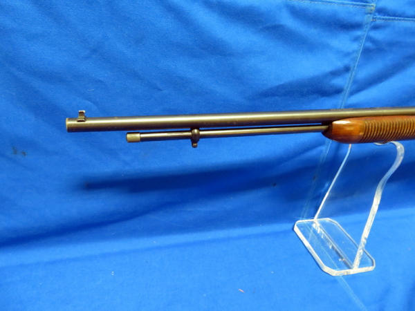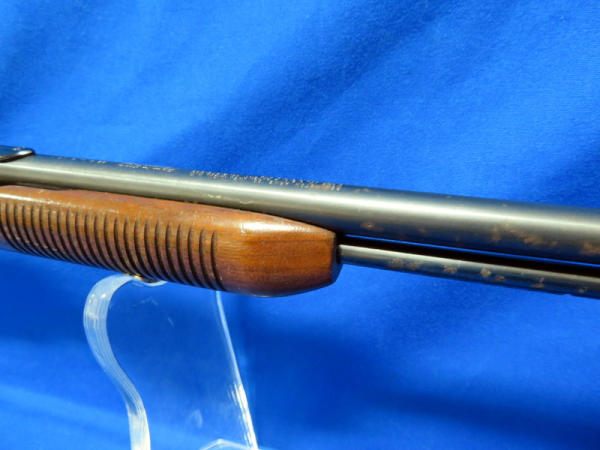 23" BBL; surface rusting on barrel; stock has scratches & dings; receiver bluing is pretty scratched up from use; pump action feels like it's catching on something; SN#249702