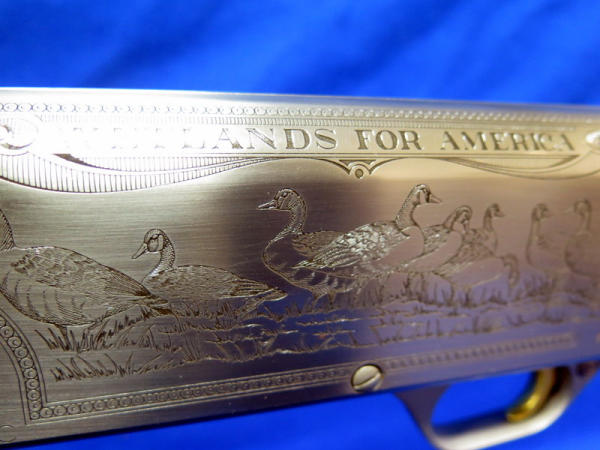 WOW, another beauty for the day! 28" vent-ribbed BBL; fancy engraved stainless receiver w/duck & geese scene created by artist Terry Redlin! Gorgeous walnut wood stock; mint & unfired! Comes with a DU logo hard padded case; 2.75" & 3" chamber; SN#89DU003447