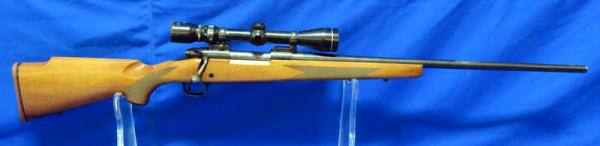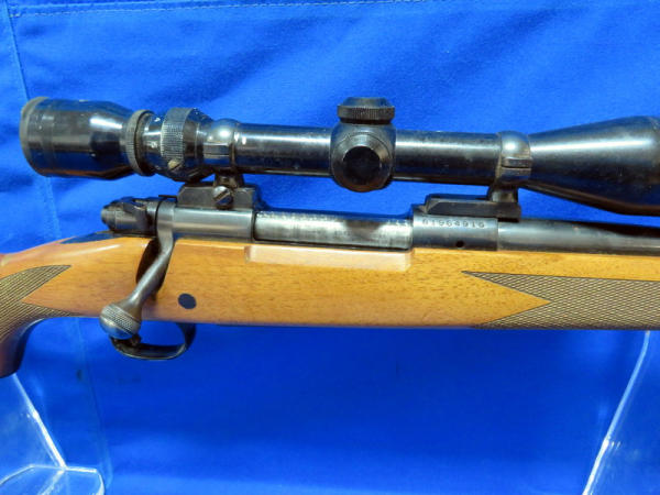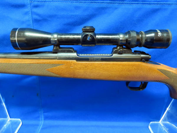 24" BBL; a little spotting of surface rust on barrel but not bad; action is smooth; checkered wood stock is nice; Tasco 3-9x40 scope is nice and clear; SN#G1964916