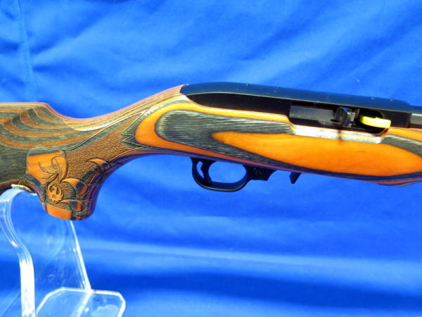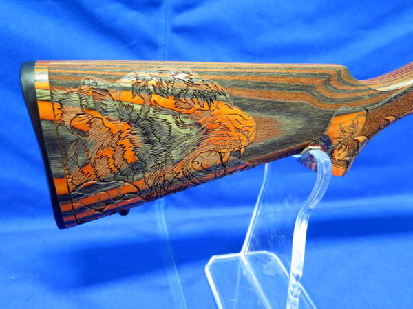18.5" BBL; bright orange laminate stock w/tiger engraved on the butt; mint & unfired w/the box; SN#0014-23388