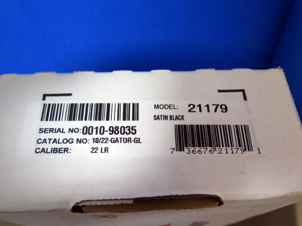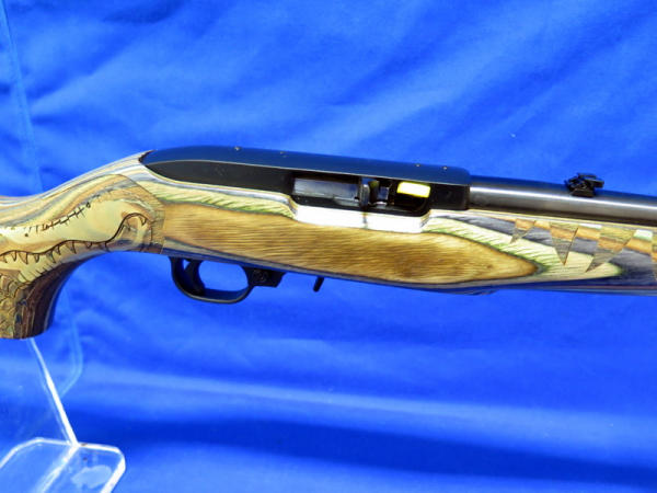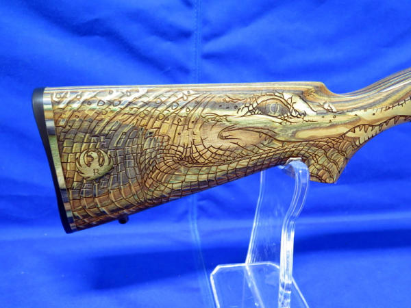 18.5" BBL; green/brown laminate stock w/gator head carved on the butt; mint & unfired; SN#0010-98035
