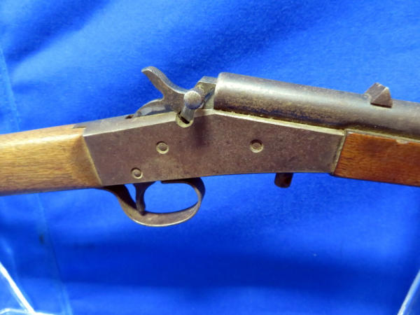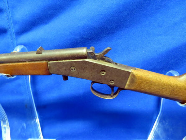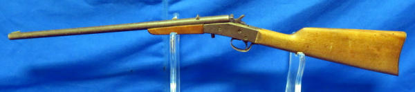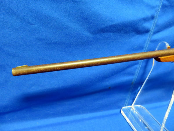 18" BBL; finish is worn on entire gun; believe it's a .22 cal; cocking mech is smooth; no SN#