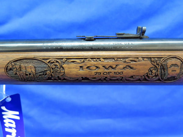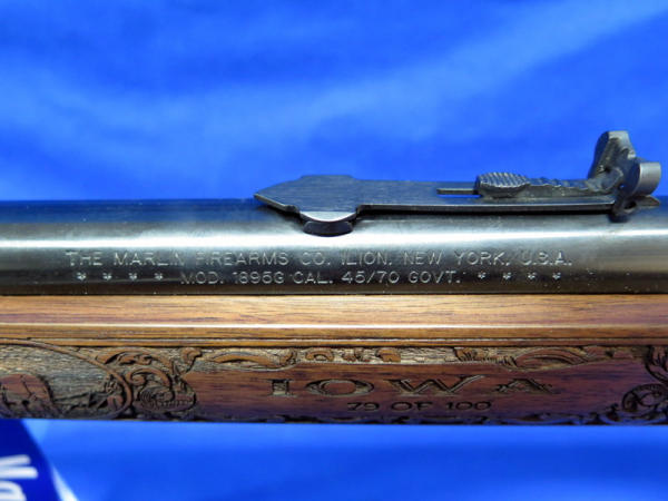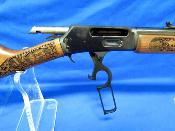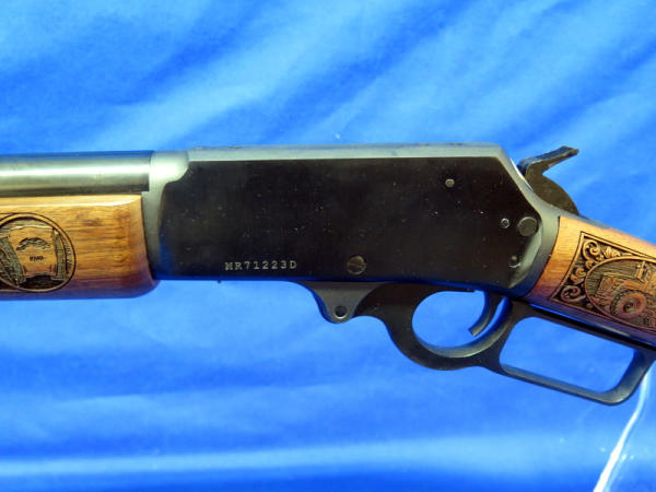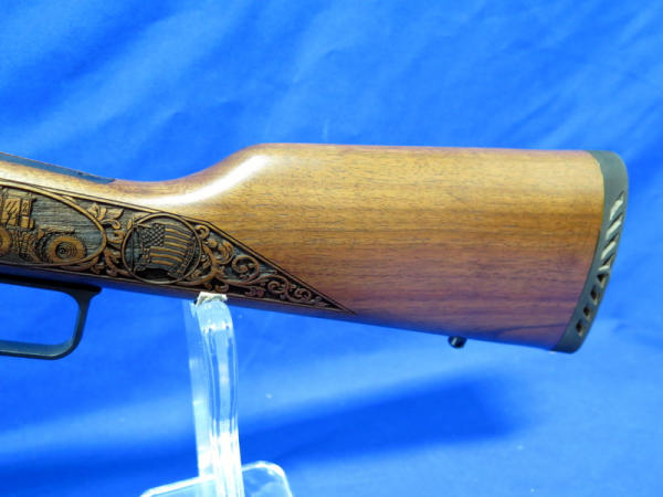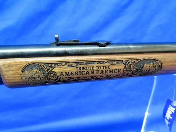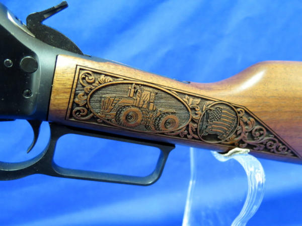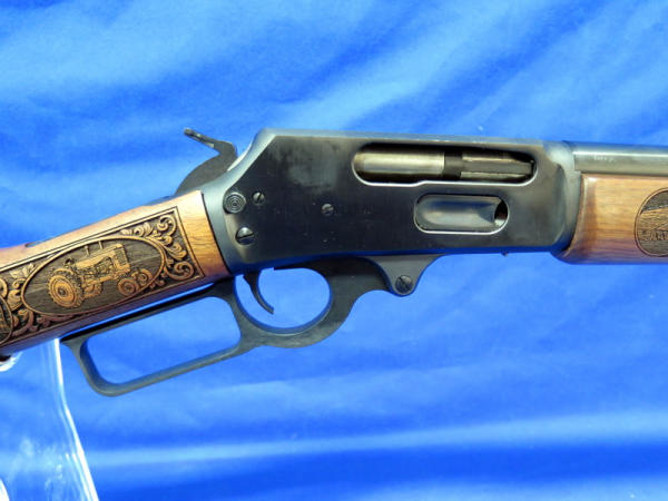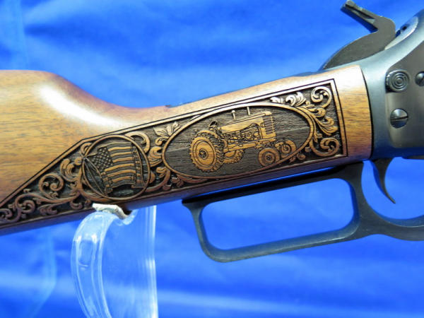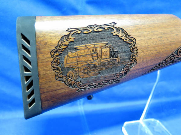 WOW, another highlight of the day! Number 79 of only 100 made; 18" BBL; highly detailed engraved stock w/farm scenes, tractors, combine, horses, flags & more! A centerpiece for the Iowa Farmer to display! SN#MR71223D