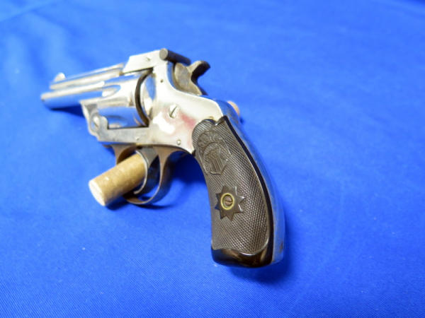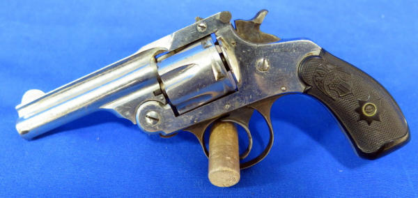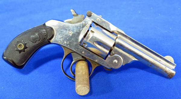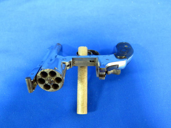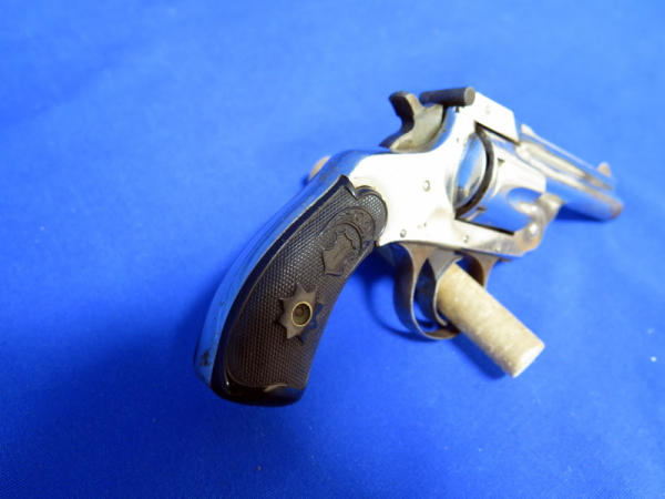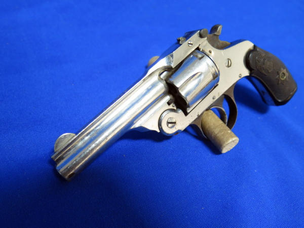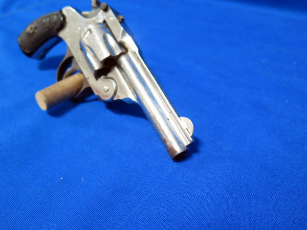 3.25" barrel; nickel plated; double action but needs some work, doesn't quite cock the way it's supposed too; top-break 6-shot; plastic grips; SN#44169