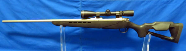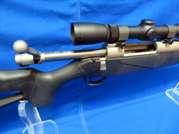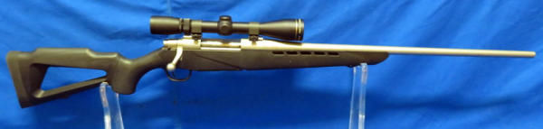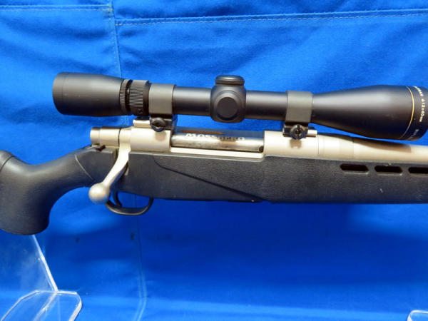 25" Stainless Barrel; black synthetic stock; has been used but overall very nice shape; Leupold Rifleman 4-12x40mm scope is nice and clear; SN#BA098216