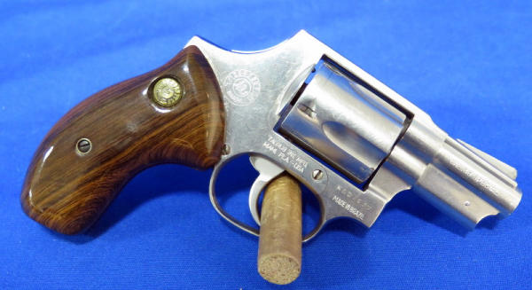 2 1/8" stainless barrel; wood grips; very nice clean little firearm; SN#KC8677