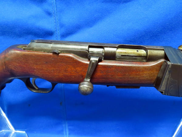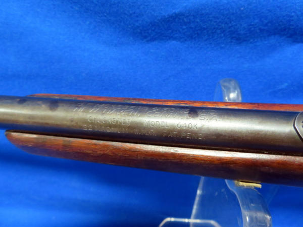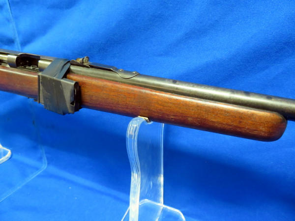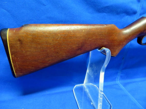24" BBL; bluing is thin; wood is nice; has 2-clips, one has been taped to the stock; large chip out of the top of the receiver; no SN#