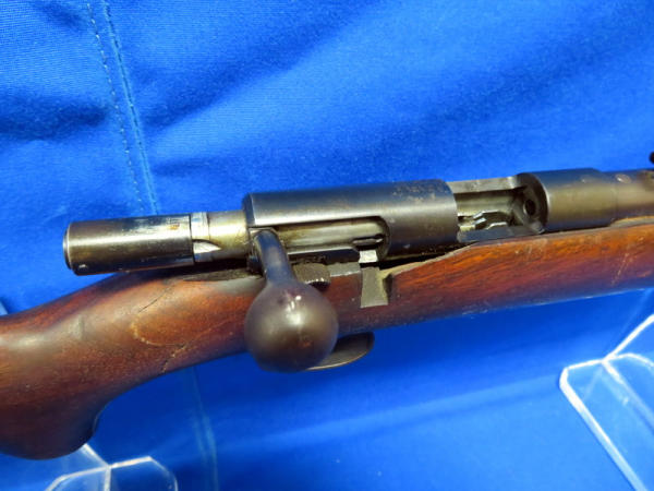 25" BBL; action is smooth; crack behind the receiver looks as if it's been glued; finish shows some wear; no SN#
