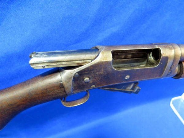 28" BBL; action is fairly smooth; has a crack in the forearm; bluing is very worn; numbers match; SN#197730