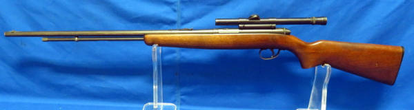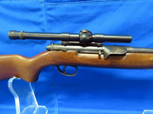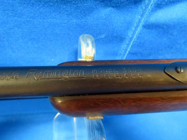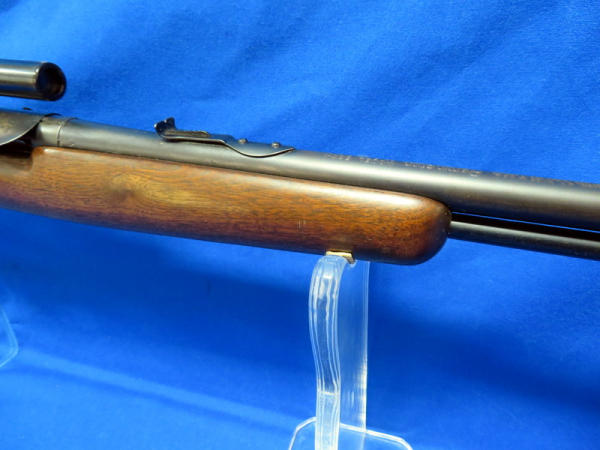 23.5" BBL; wood is nice; bluing is starting to thin; Weaver B4 scope is clear; this was the last all-steel .22 auto that Remington made; broken front sight; no SN#