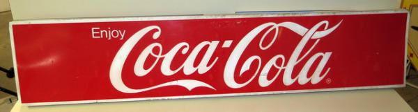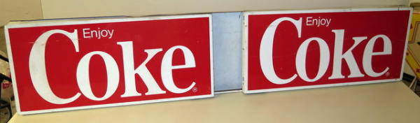 3pc Sign off the top of a glass-front cooler, main sign is 48"x10", has some wear