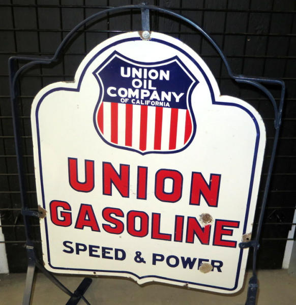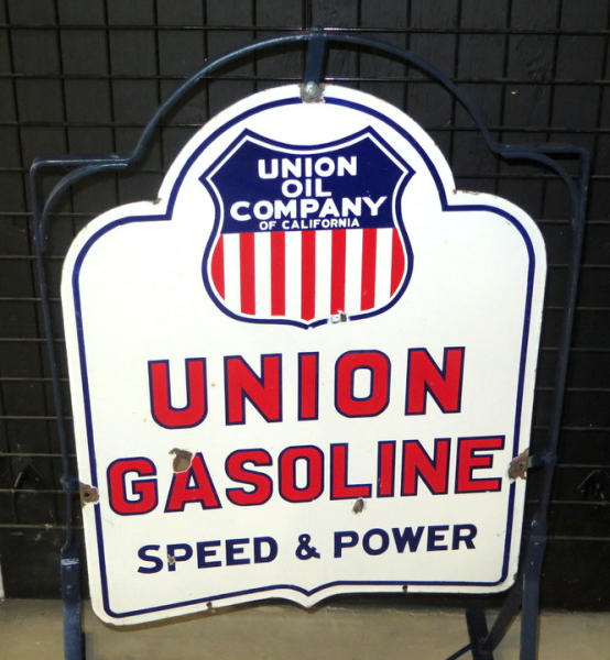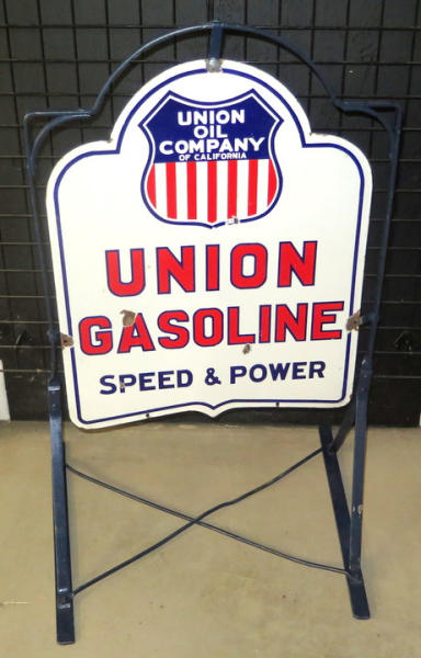 great looking sign, has some chips around the edges and a few larger chips, sign is 26"x32" plus the stand, stand has been repainted, but I believe is original to the sign, great looking sign