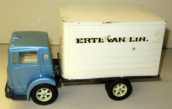 different variation than lot #610; this one has white plastic spoke rims and the rare, small "The Trend" Decals on the cab doors; some play wear, rates 90% paint