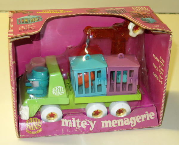 Very short lived toddler's play toy by Ertl in the 1970's; about 8" long, toy is still sealed; box has some general wear, box rates 7 condition