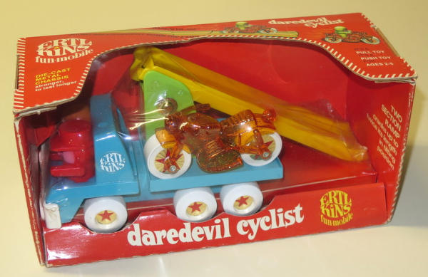 Very short lived toddler's play toy by Ertl in the 1970's; about 8" long, toy is still sealed; box has some general wear, box rates 7 condition