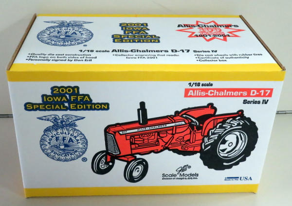 Premier Pedal Tractor & Farm Toy LIVE Auction 15 Ohio Street, Wakonda, SD 57073 Super collection of rare & custom built farm toys & Pedal Tractors! Many pieces we have never seen or sold before--especially in this condition! Catalog | Terms of Auction | Print Catalog Catalog | Terms Back to Catalog #154 – AC D-17 Ser. IV wf '01 IA FFA Spec. Ed. NIB More Details NIB Location: 15 Ohio Street, Wakonda SD, 57073 High Bid: $100.00 – sdbsmtoys bidding history Bidding has closed on this lot Back to Catalog