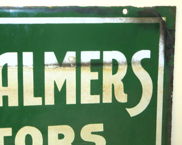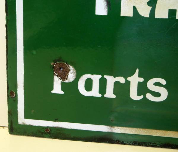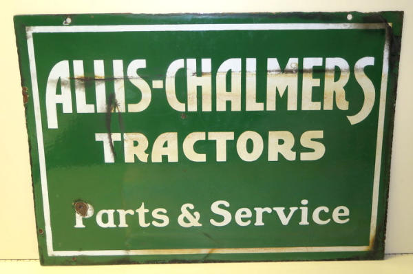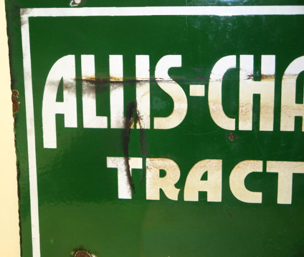 Rare & Early, 27.5"x20", has one bullet hole and some edge discoloration, great color, a few small chips, not perfect, but a very nice example of an early AC sign