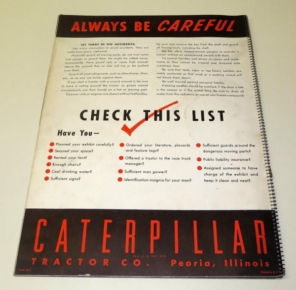 very cool piece, shows all kinds of CAT displays at fairs, 16 pages, large format, 13"x17", some discoloration and general wear, but overall very cool