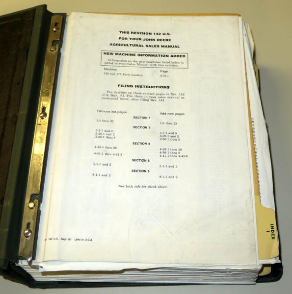 another nice dealer sales manual, about 3.5" thick of material, 40-series plus all the equipment, cover and contents are clean and show little use