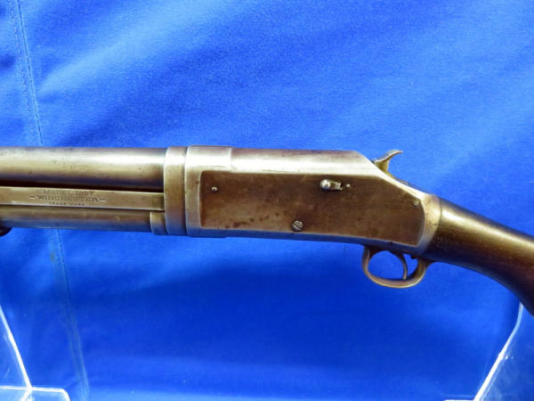 30" round BBL; bead sight; pump is gummed up; bluing is thin; stock has hairline crack on both sides behind the receiver; FC; SN#347751